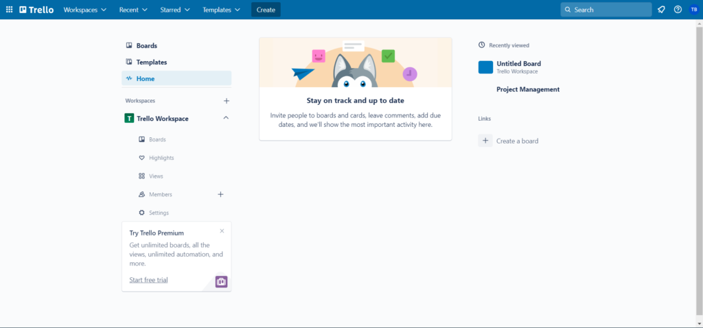 Trello è una squadragestione e collaborazione del progettoapp che ti consente di gestire tutti i tuoi progetti e attività sotto lo stesso tetto utilizzando la sua interfaccia facile da usare. Essomostra tutte le tue attività su una bacheca Kanban.