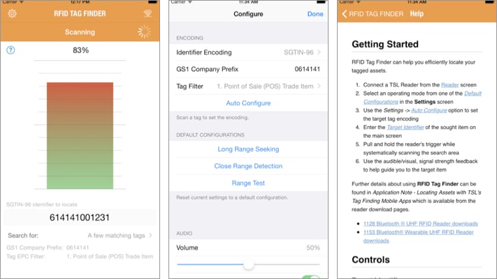 Grazie al feedback acustico reattivo, alla potenza del segnale e al misuratore di segnale grafico avanzato, RFID Tag Finder ti aiuta ad accedere e monitorare rapidamente i tag. Puoi anche configurare Tag Finder per rilevare quando la risorsa è molto vicina.