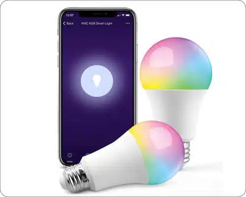 La lampadina LED intelligente KMC ha ottenuto la certificazione FCC, CE, RoHs che ne garantisce la durata. Gli utenti possono controllare la lampadina da qualsiasi luogo tramite l'app per smartphone; quando è connessa a Internet, la lampadina è accessibile da qualsiasi luogo. L'app Smart Life consente a più utenti di una famiglia di controllare la lampadina.