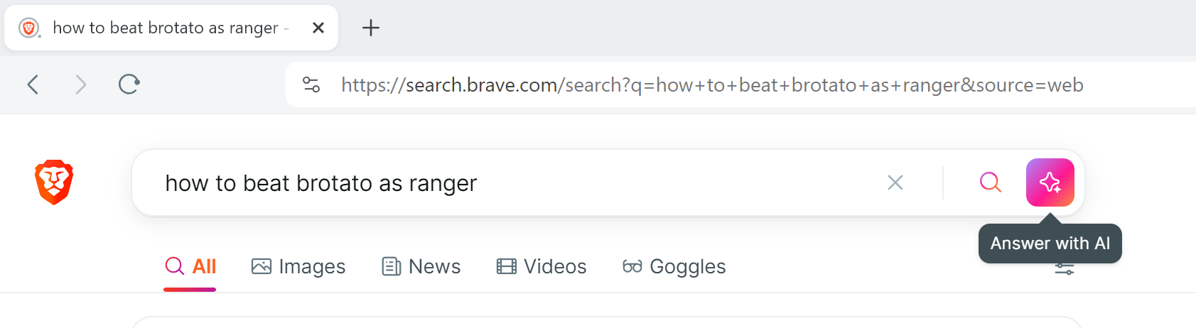 Ricerca coraggiosala nuova funzione Rispondi con AI è ora disponibile. La funzionalità sostituisce AI Summarizer, utilizzato in precedenza su Brave Search per fornire riepiloghi basati sulle query degli utenti.