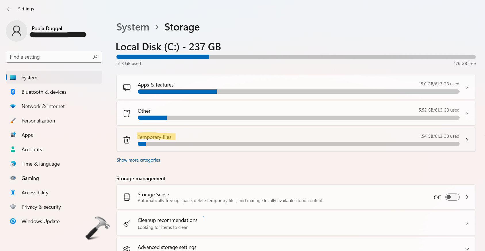 2.Una volta lì, fai clic suFile temporaneiopzione.