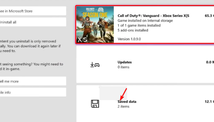 - Nella schermata successiva, fare clic suDati salvatisulla destra e seleziona COD Vanguard per accedere ai dati salvati del gioco.