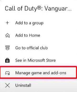 - Successivamente, seleziona il tuo gioco COD Vanguard, fai clic suMenue seleziona Gestisci gioco e componenti aggiuntivi dal menu contestuale.
