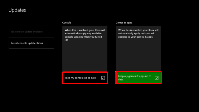 - Nella pagina successiva, seleziona Mantieni aggiornata la mia console e Mantieni aggiornati i miei giochi e i miei giochi in modo che sia il software che i giochi Xbox One si aggiornino automaticamente quando vengono rilasciati nuovi aggiornamenti.
