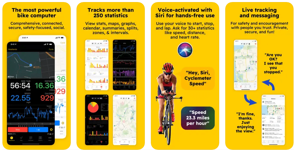 Cyclemeter è l'applicazione più avanzata per ciclisti, trasforma il tuo iPhone in un potente computer per il fitness. Progettato specificamente per iPhone, iPad, Apple Watch e iCloud, Cyclemeter offre una suite completa di funzionalità tra cui mappe, grafici, tempi parziali, intervalli, giri, annunci, zone e piani di allenamento. Questa app è ossessivamente completa, come notato da Wired, e registra una grande quantità di dati, secondo Macworld, il tutto all'interno di un'interfaccia pulita e facile da usare elogiata dal New York Times.