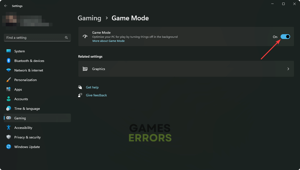 3. Attiva l'interruttore accanto aModalità di gioco.