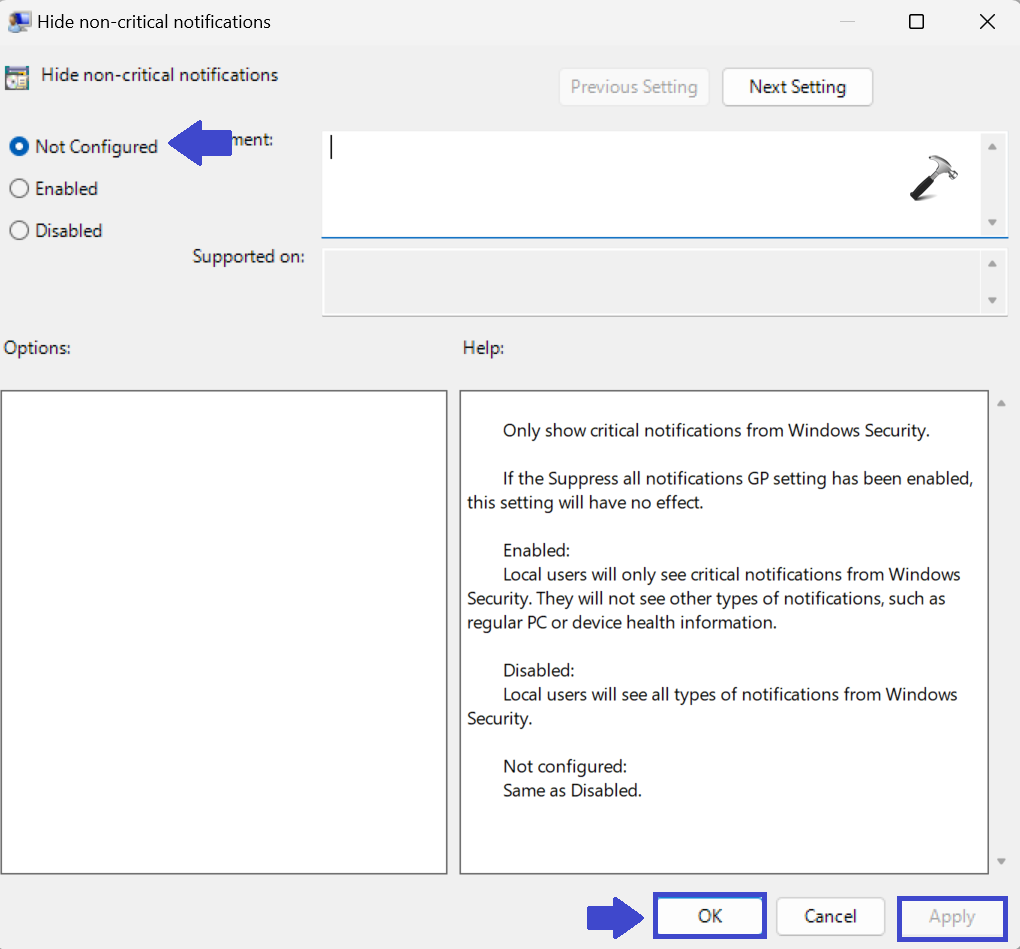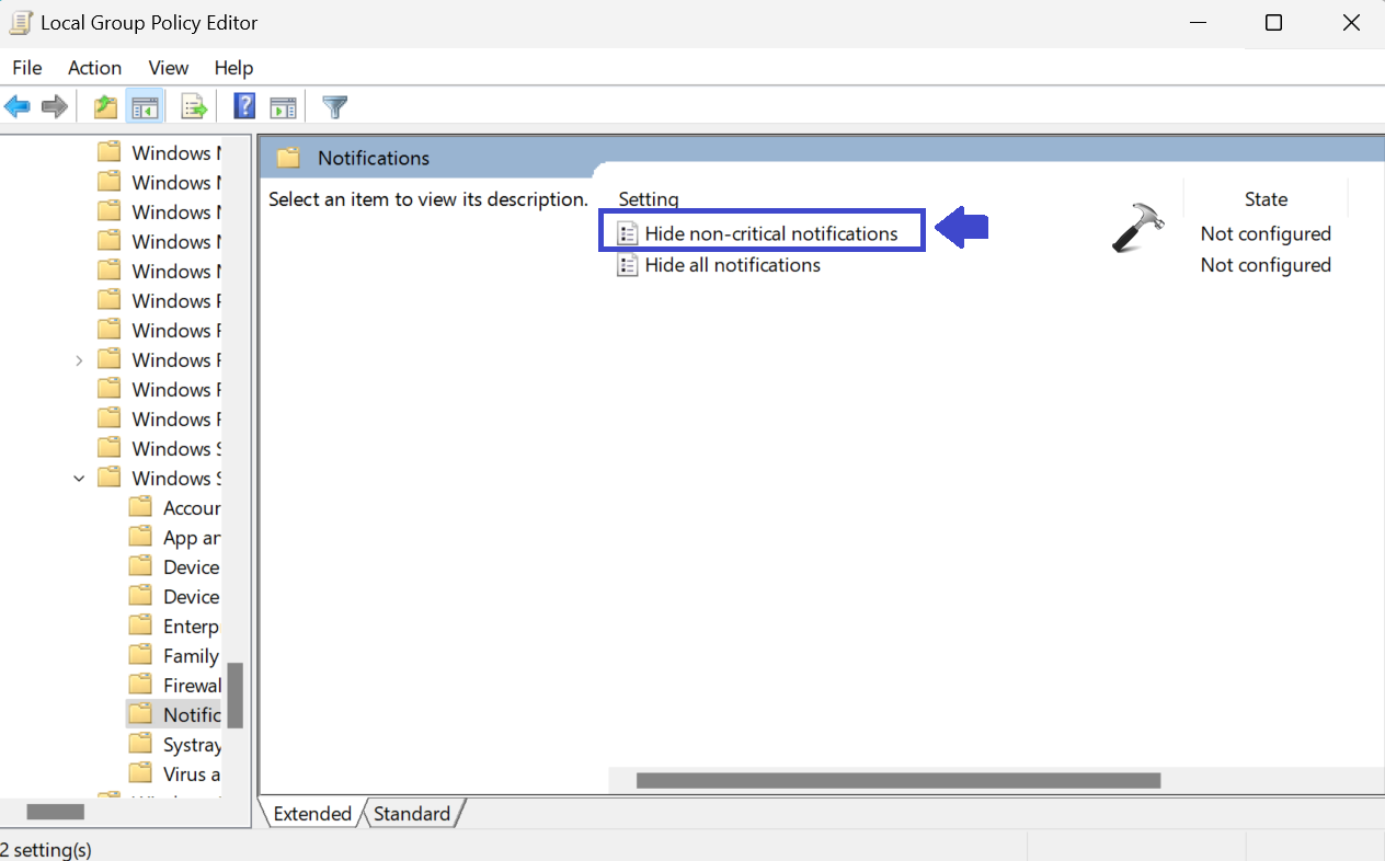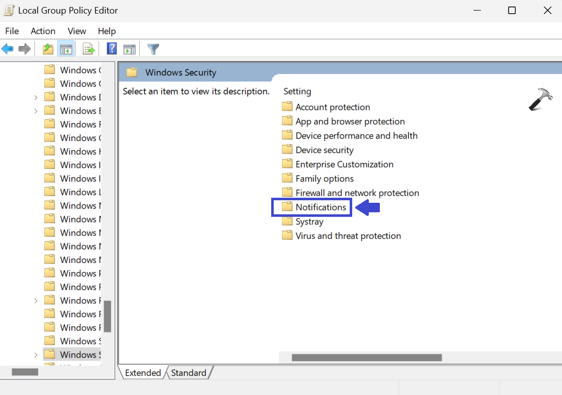 Computer ConfigurationAdministrative TemplatesWindows SecurityNotifications
