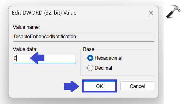 3. Fare doppio clic sulla chiave di registro "DisableEnhancedNotifications".