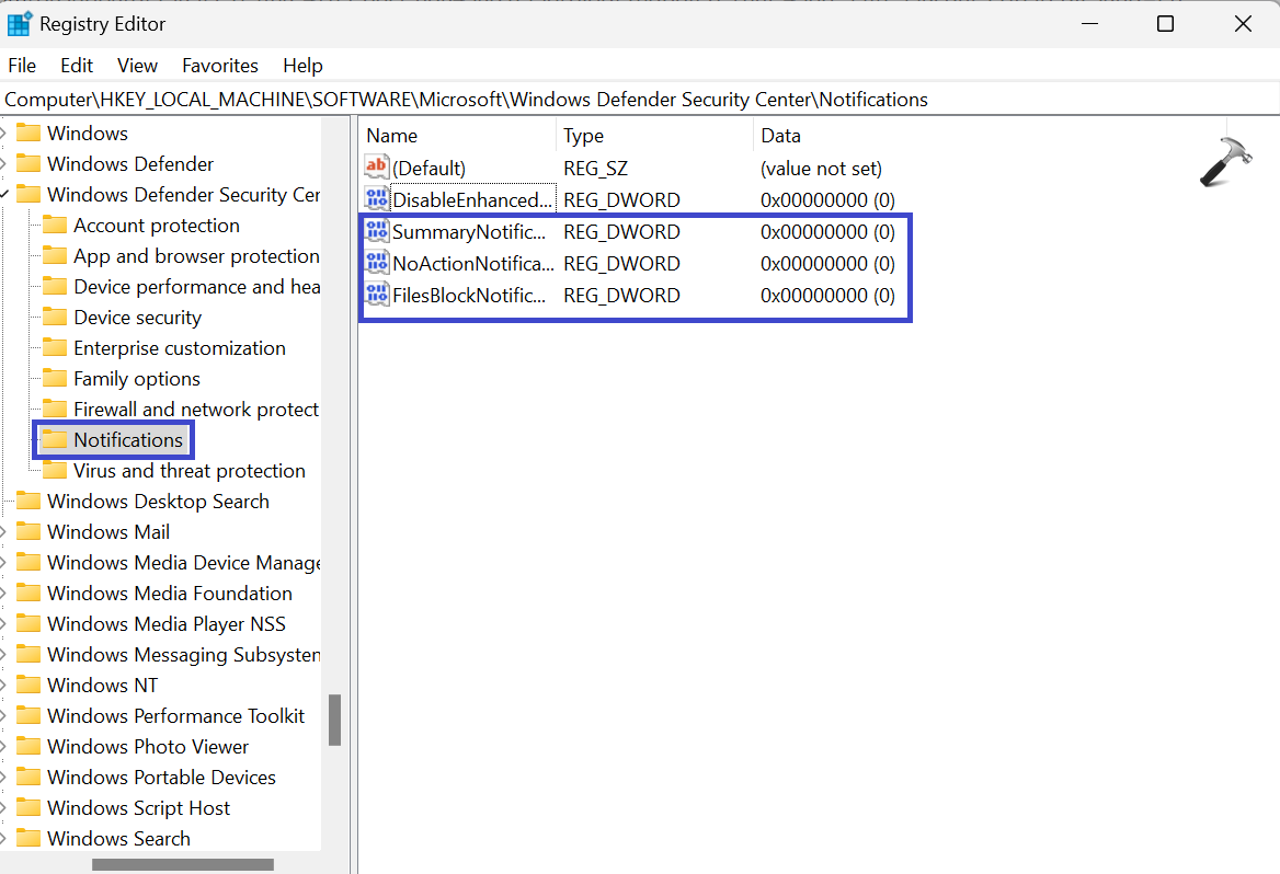 ComputerHKEY_LOCAL_MACHINESOFTWAREMicrosoftWindows Defender Security CenterNotifications
