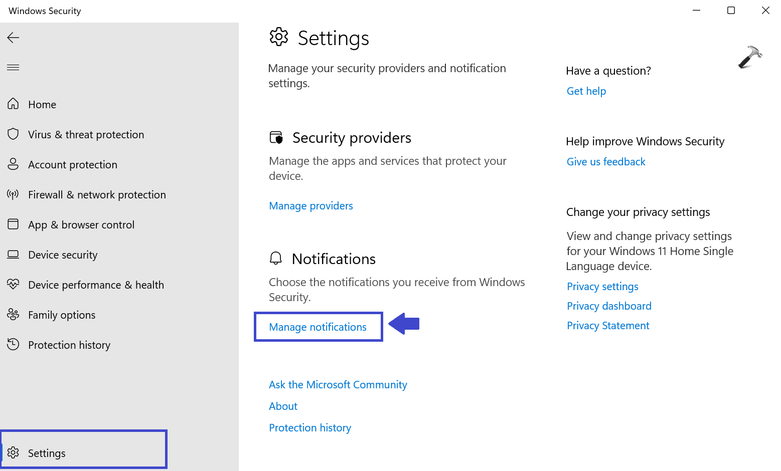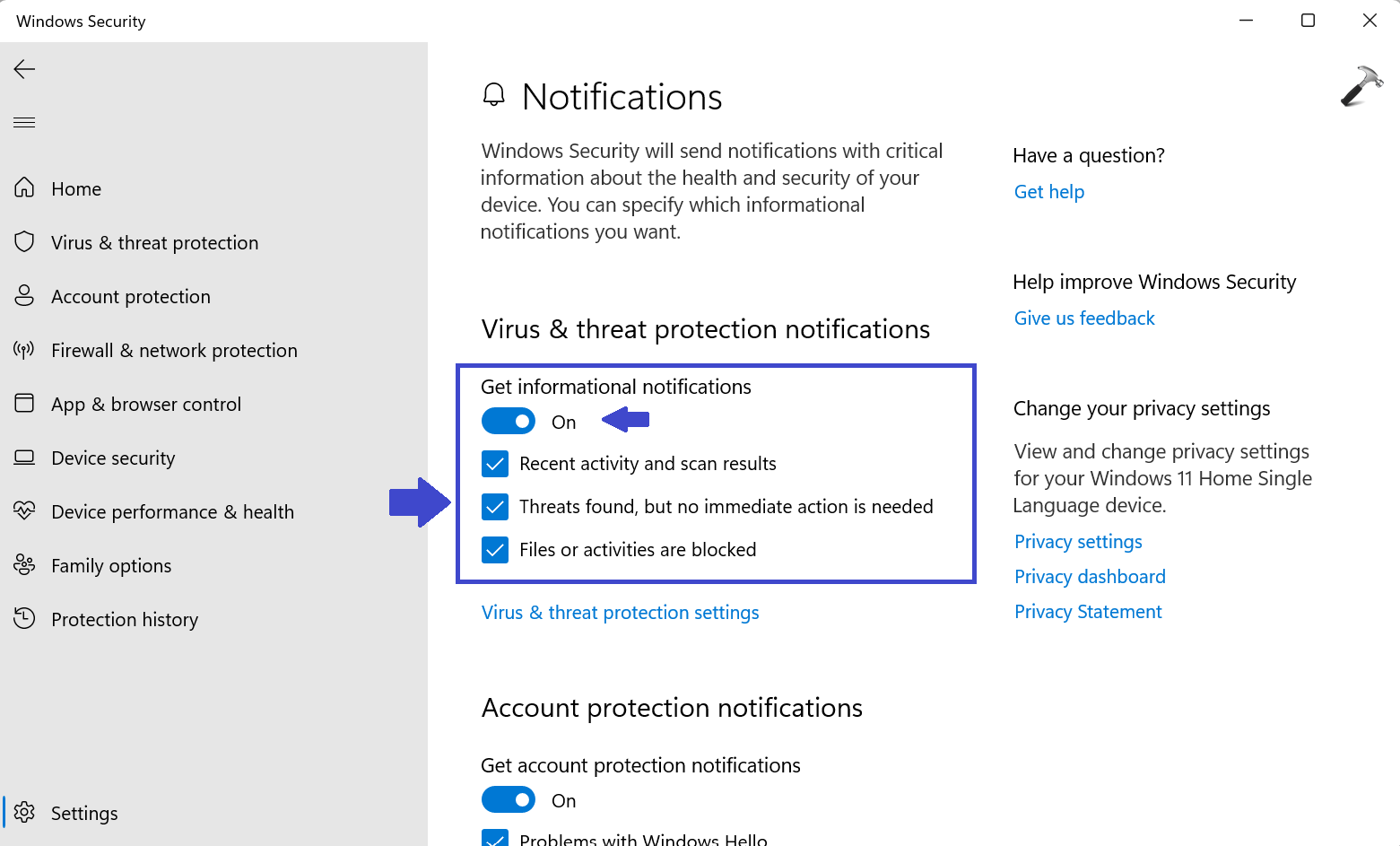 Opzione 3: attiva o disattiva le notifiche di protezione dalle minacce per la sicurezza di Windows utilizzando Sicurezza di Windows