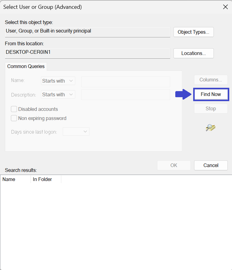 7. Nei risultati della ricerca visualizzati di seguito, cerca il tuo nome nell'elenco e selezionalo. Fare clic su OK. Tornando alla finestra Seleziona utente o gruppo, fare clic su OK per confermare il nome dell'oggetto.