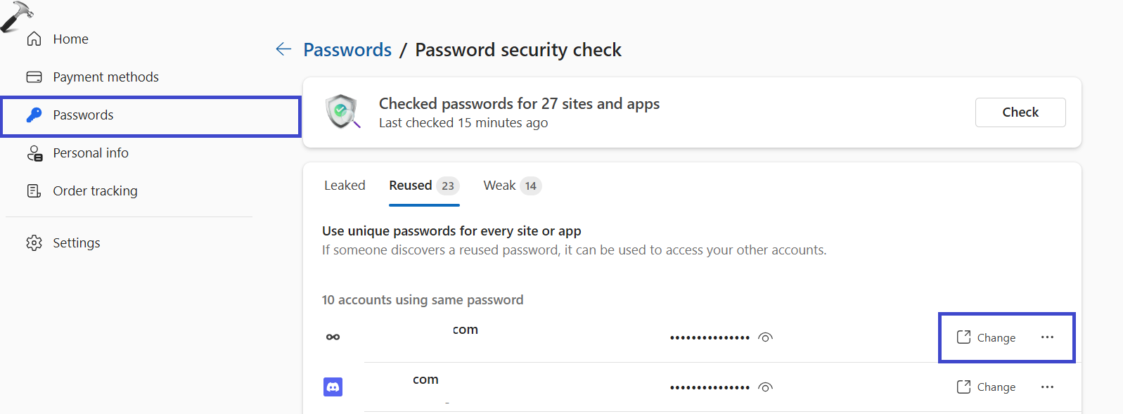 Correzione 2: utilizzare Microsoft Edge per modificare le password salvate in Credential Manager