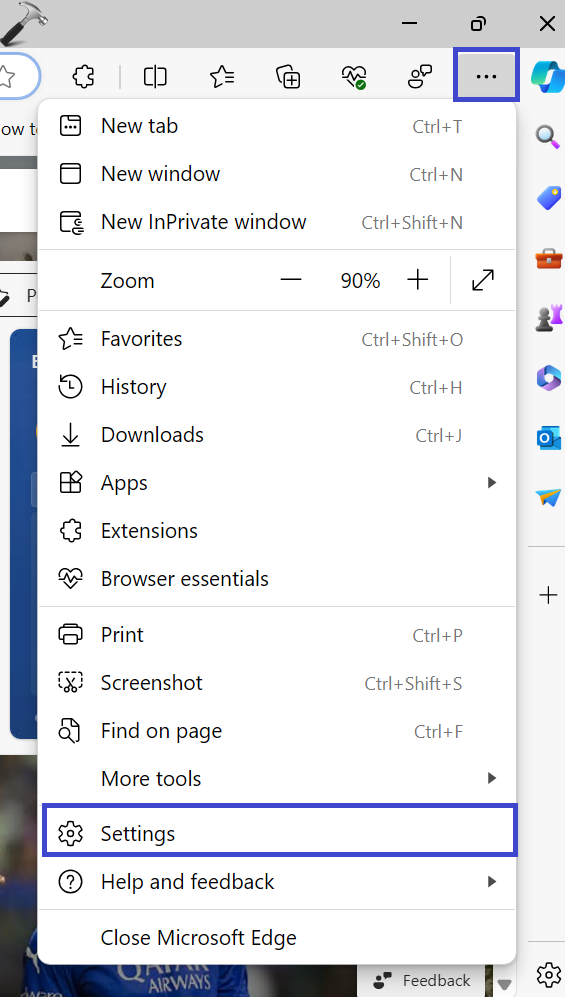 1. Apri Microsoft Edge. Fare clic su“…pulsante del menu " e selezionare "Impostazioni“.