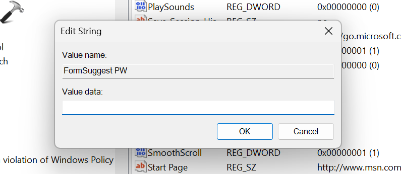 3. Nel pannello di destra, fare doppio clic su "ModuloSuggerimento PW". Immettere i dati valore e fare clic su OK.