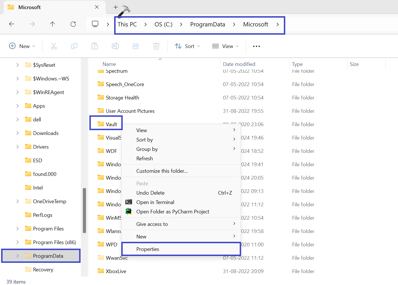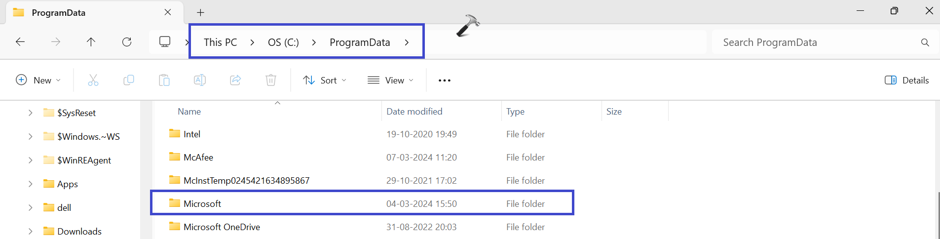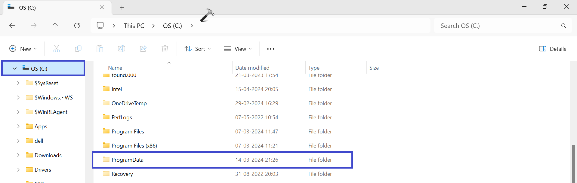 1. Apri Esplora file e vai alla sezione "C: Dati del programma"rubrica.