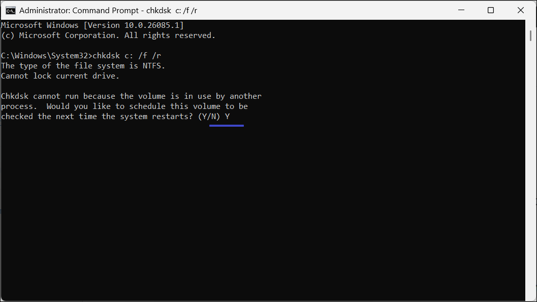 chkdsk c: /f /r