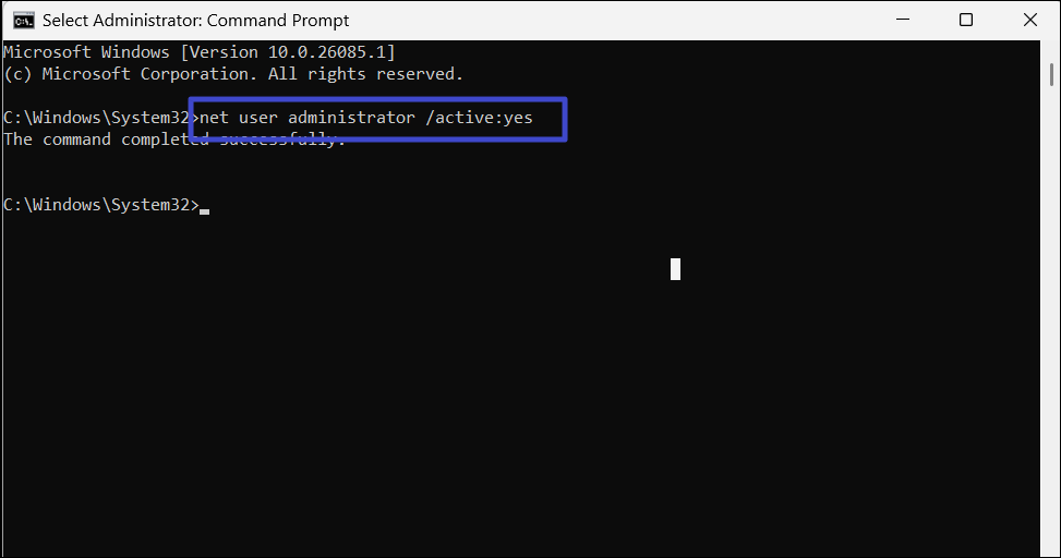net user administrator /active:yes