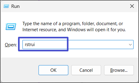 1. Premi Windows + R, digitarstruinella casella di testo e premi Invio per aprire il pannello di controllo Ripristino configurazione di sistema.