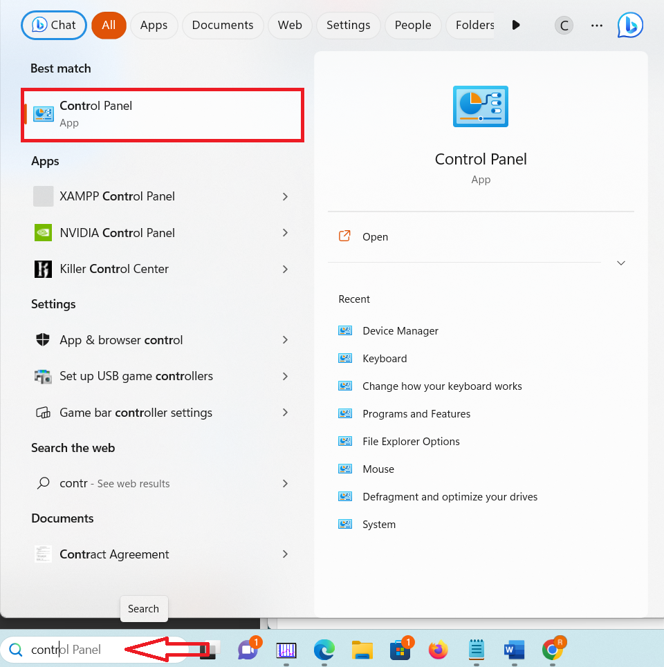 AprirePannello di controllocercandolo nella barra di ricerca.