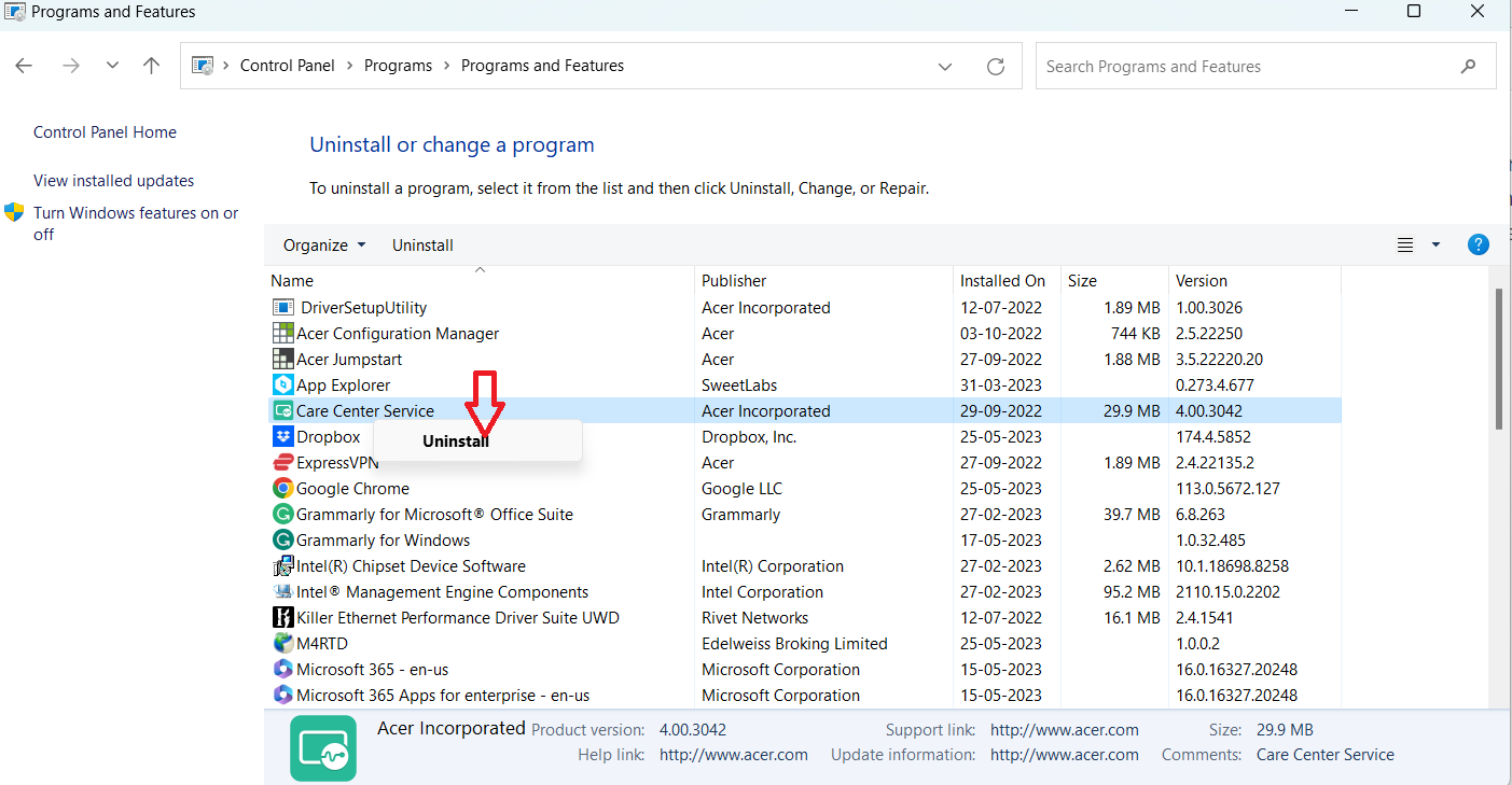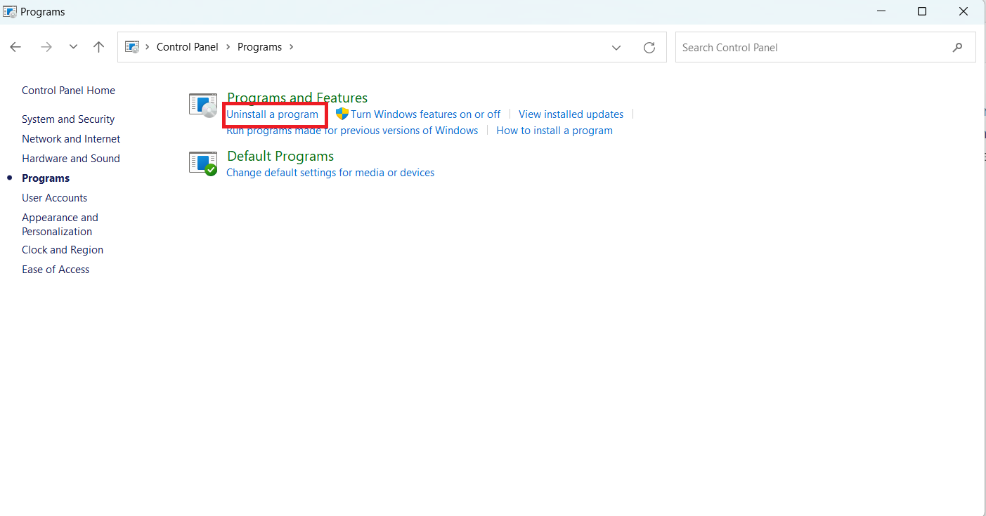 Quindi fare clic suDisinstallare un programmaInProgrammi e funzionalità.