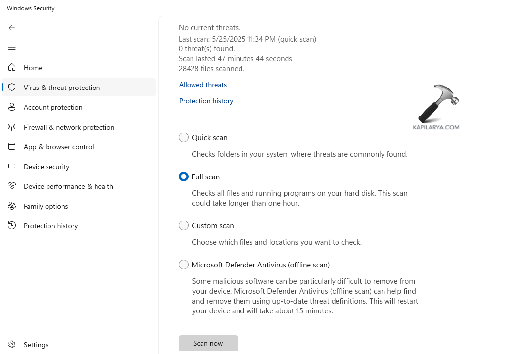 Passaggio 4-Ora seleziona Opzioni di scansione > Scansione completa > Scansione ora.