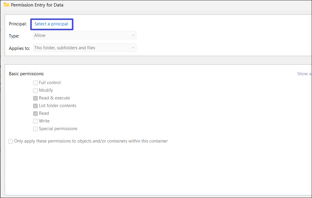 Ora che hai acquisito la proprietà della cartella, devi concedere l'autorizzazione all'utente.