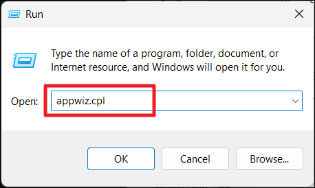 1. Digita "appwiz.cpl”nella finestra di dialogo Esegui e premere Invio.