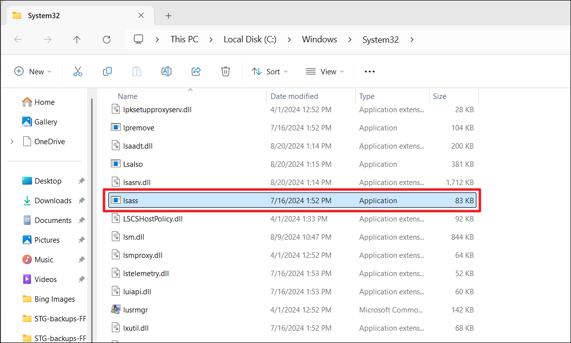 3. Se il “lsass.exe”il file si trova in un altro posto diverso daC:WindowsSystem32posizione, è malware. Mentre sei lì, assicurati di controllare se il file è scritto correttamente (lsass.exe). Anche se un carattere è scritto male o manca, significa che il malware finge di essere il file legittimo, ad es. lasss, lssas, Isass (con la “i” maiuscola invece della “l” minuscola).
