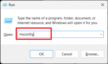 1. Aprire la casella di comando Esegui, digitaremsconfige colpisciEntra.