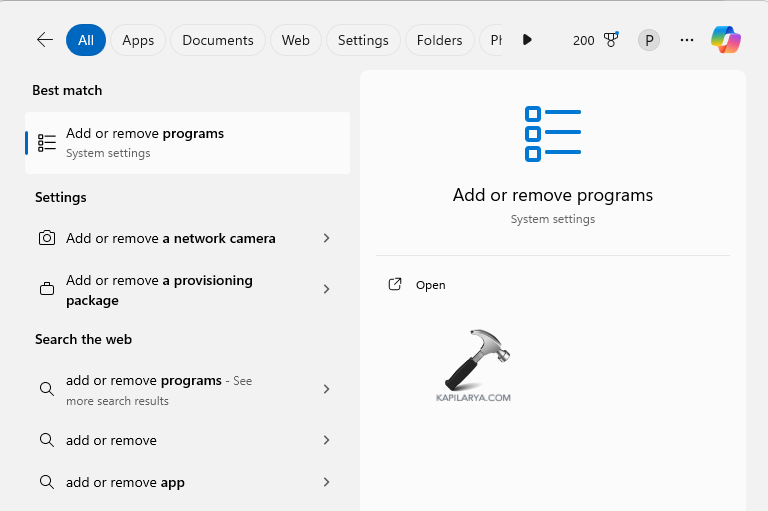 Passaggio 1-Inizialmente apri Aggiungi o rimuovi programmi