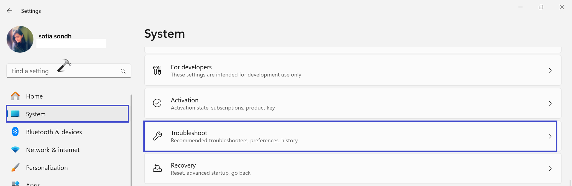 1. Apri l'app Impostazioni e fai clic su "Risoluzione dei problemi“.