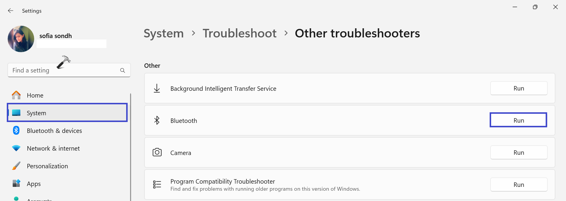 3. Ora fai clic su "Correre"accanto all'opzione Bluetooth.