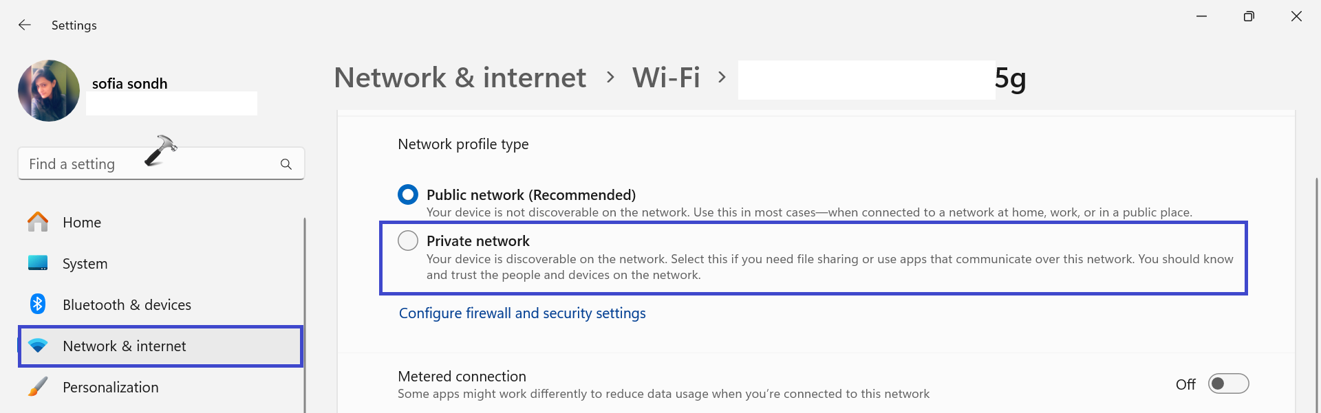 Per risolvere il problema con la condivisione nelle vicinanze che non funziona su Windows 11 modificando il tipo di connessione di rete:
