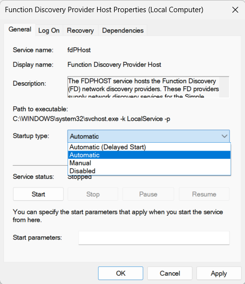 2. Seleziona “Automatico" dalTipo di avvioper impostare l'avvio automatico del servizio.