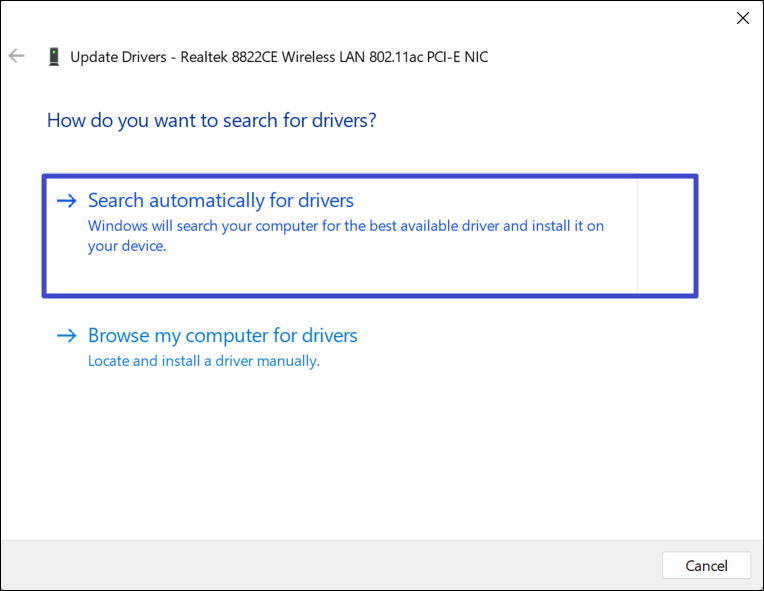 4. Seleziona "Cerca automaticamente l'autista" e seguire le istruzioni visualizzate sullo schermo.