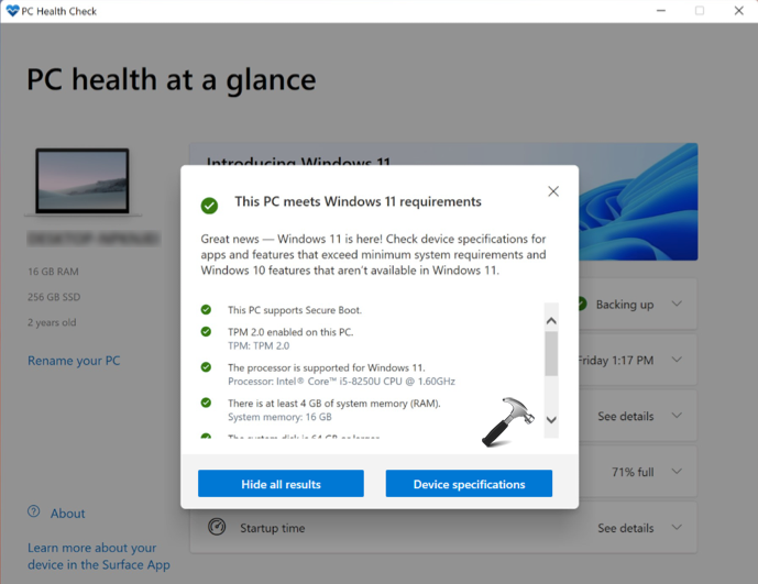 Se il tuo sistema è perfetto per Windows 11, dovrebbe essere mostrato nell'app PC Health Check: