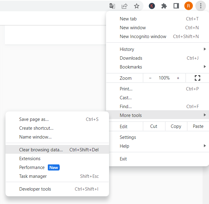 2. Seleziona "altri strumenti" e quindi l'opzione "cancella dati di navigazione" come mostrato nell'immagine.