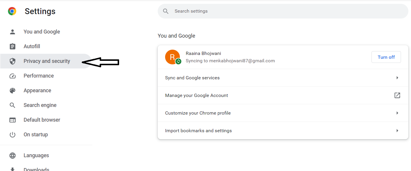 4. Fare clic sull'opzione "privacy e sicurezza" dall'elenco a sinistra.