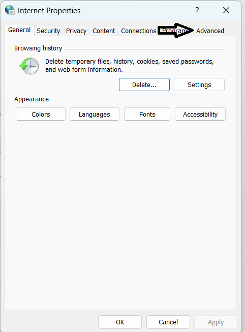 2. Digitare "inetcpl.cpl" nel prompt di esecuzione e premere "ok".