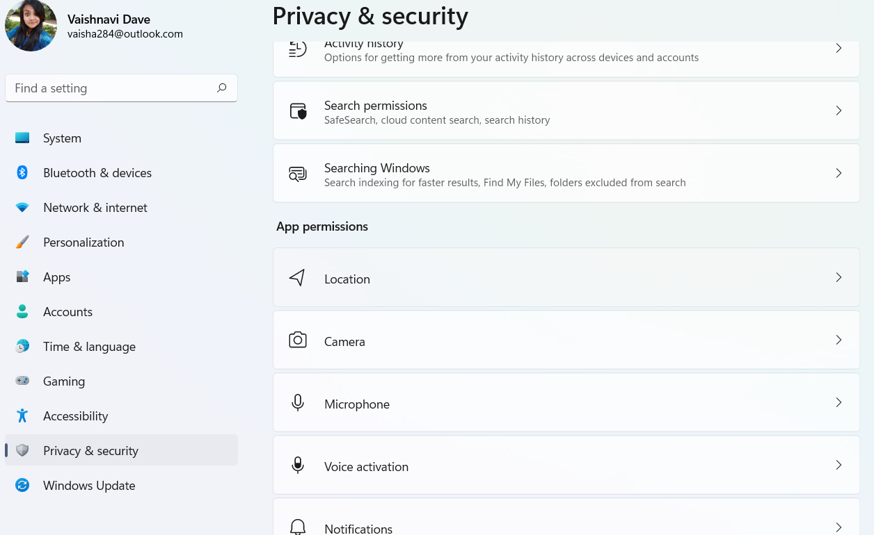 - Apri Impostazioni e vai alla sezione Privacy e sicurezza.