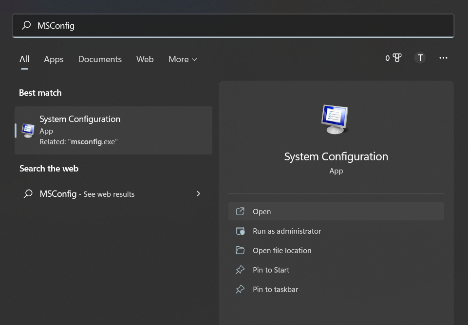 - CercareMSConfignel menu Windows e aprire l'applicazione.