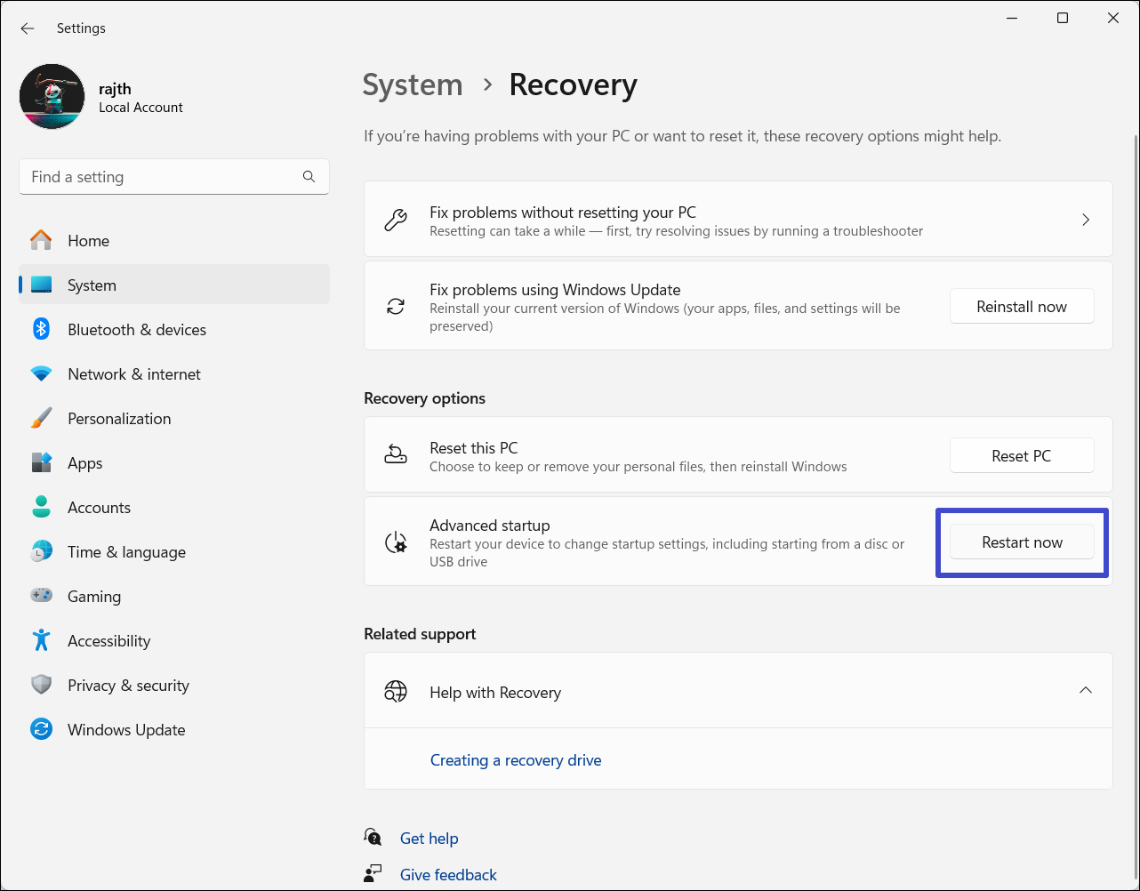 Risoluzione dei problemi" accanto ad Avvio avanzato.3. Una volta aperto l'ambiente ripristino Windows, fare clic su "