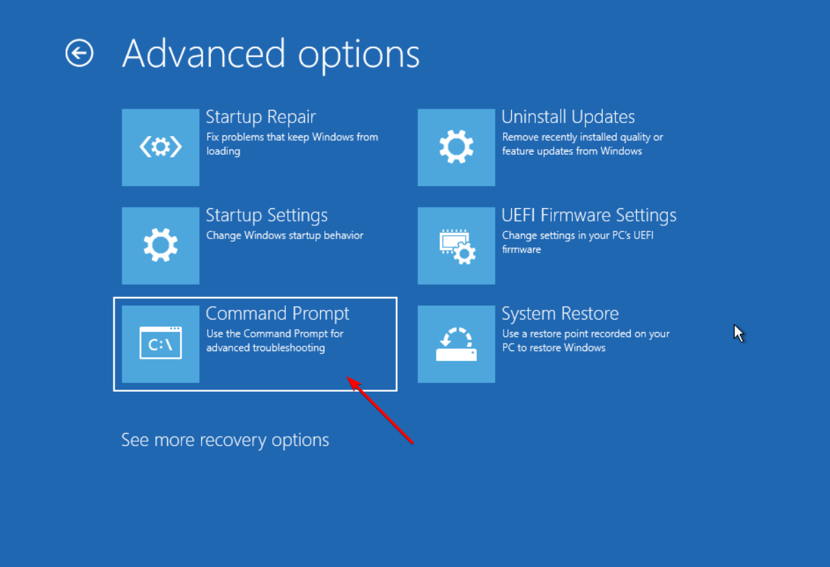 Prompt dei comandi”“.5. Dalla schermata Opzioni avanzate, seleziona "