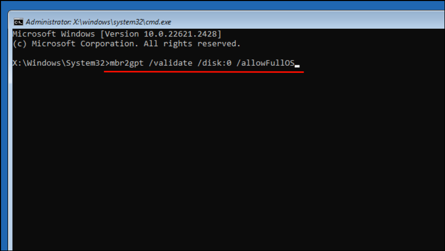 Metodo 3: utilizzare lo strumento MBR2GPT per convertire l'unità