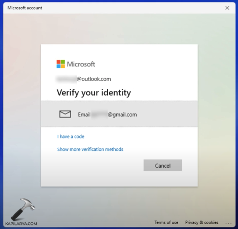 3.Nel caso in cui tu abbia abilitato l'autenticazione a più fattori (MFA) sul tuo account, devi verificare la tua identità. Seleziona unmetodo di verifica dell'identitàche hai assegnato in precedenza al tuo account Microsoft e riceverai un codice tramite e-mail alternativa o tramite SMS oppure puoi anche utilizzare il codice dall'app Authenticator. Dipende completamente da come imposti l'MFA per il tuo account. Se non è presente alcuna MFA sul tuo account, puoi andare al passaggio successivo.