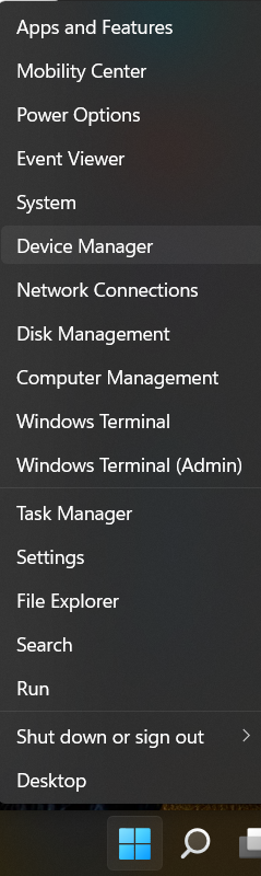 1.Fare clic con il tasto destro suInizioe scegliGestore dispositivi.