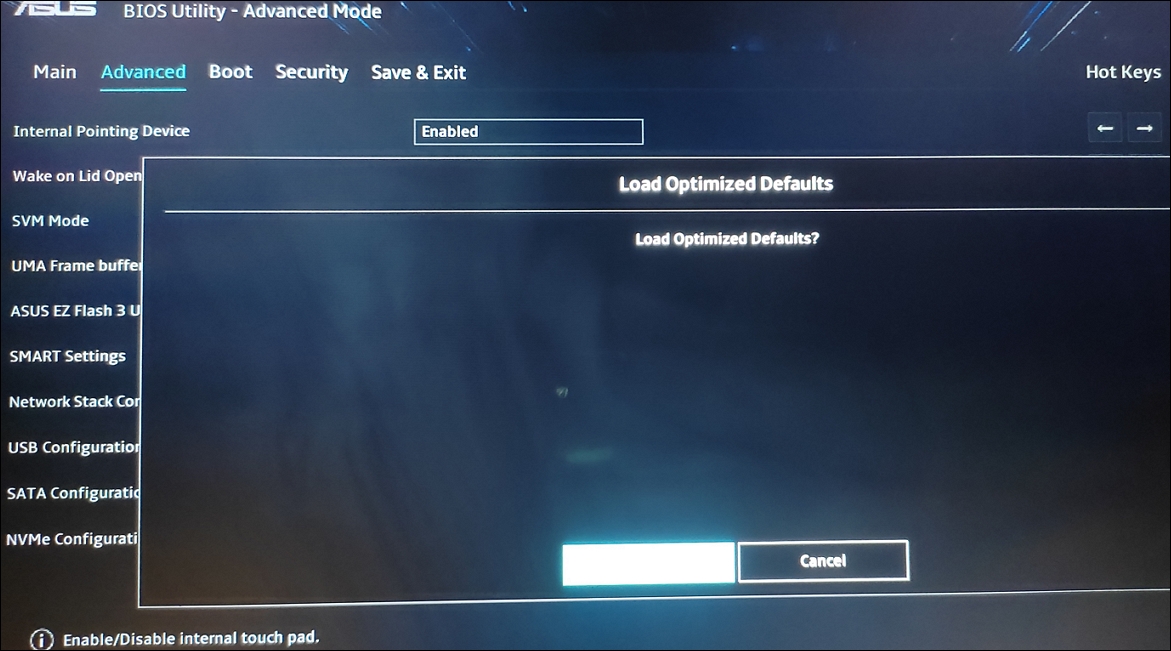 1. Apri il menu del BIOS e premi il pulsante "F9"tasto per caricare le impostazioni predefinite.