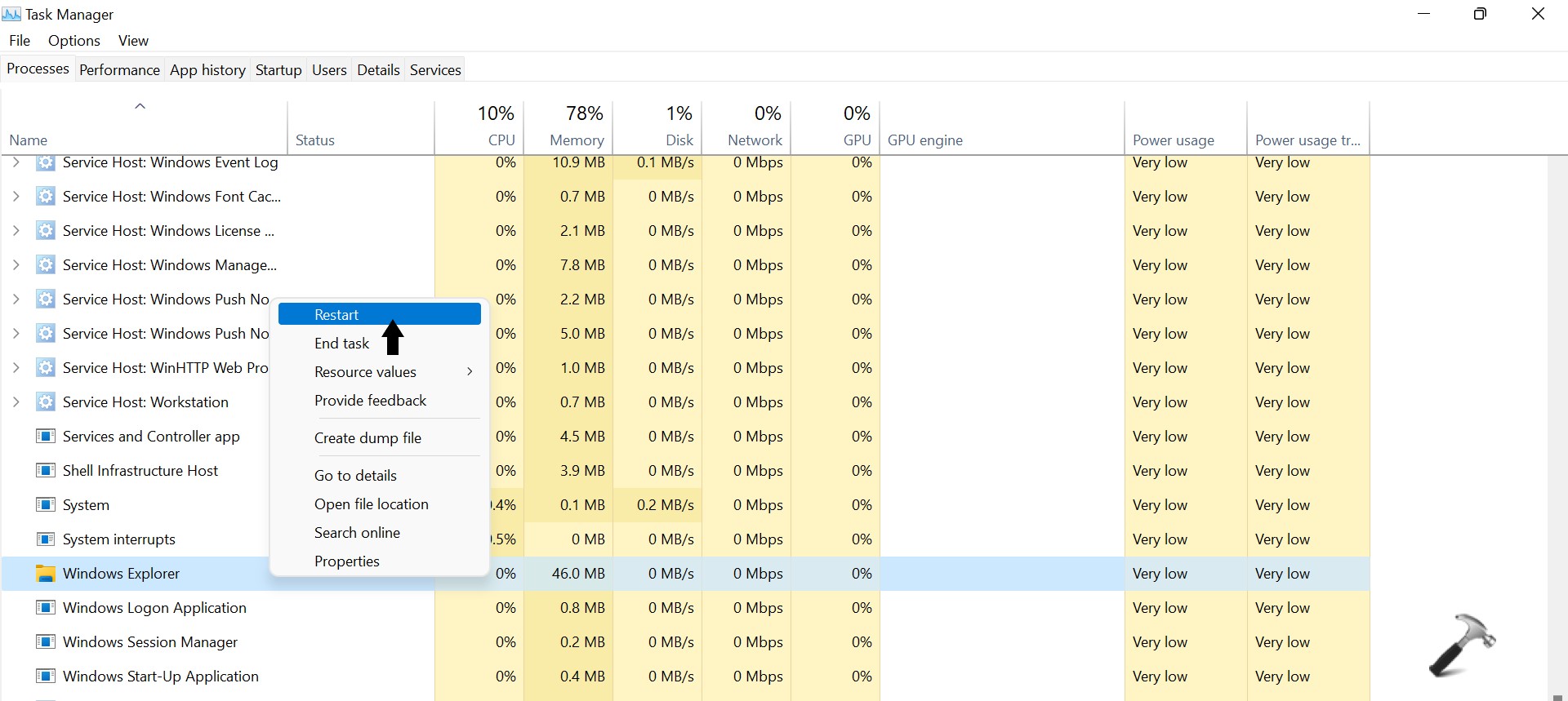 Metodo 4: riavviando Esplora risorse