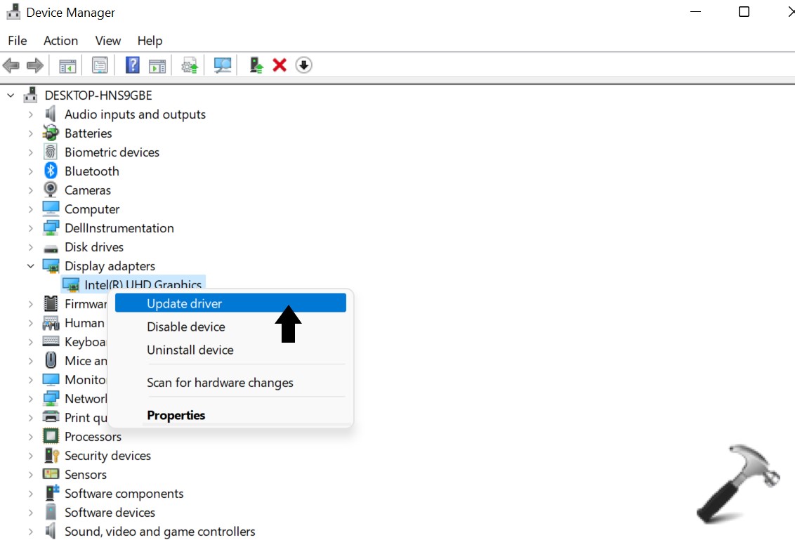 4. Fare clic con il tasto destro sulla GPU da aggiornare e fare clic suAggiorna driver.