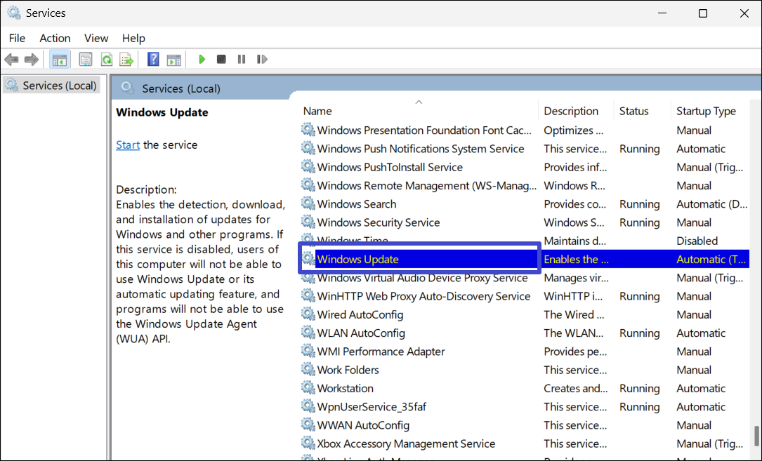 2. Nella finestra Servizi, trova e fai doppio clic su “Aggiornamento di Windows“.